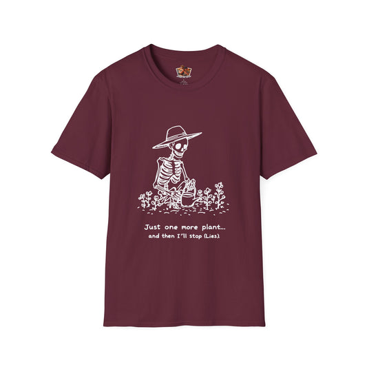 Funny Gardening Skeleton T-Shirt - "Just One More Plant" - Unisex Softstyle Tee